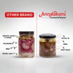 Indulge in the bold and savoury taste of Onion Pickle from Annalaksmi. Prepared with the rich flavour of fresh onions and infused with aromatic spices, this condiment offers a tangy, savoury and spicy burst of flavours, adding zing to your every meal. Annalaksmi’s onion thokku brings the perfect blend of zest and heat to your plate.